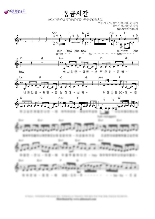 앤씨아(NC.A) - 통금시간 by 악보마트0