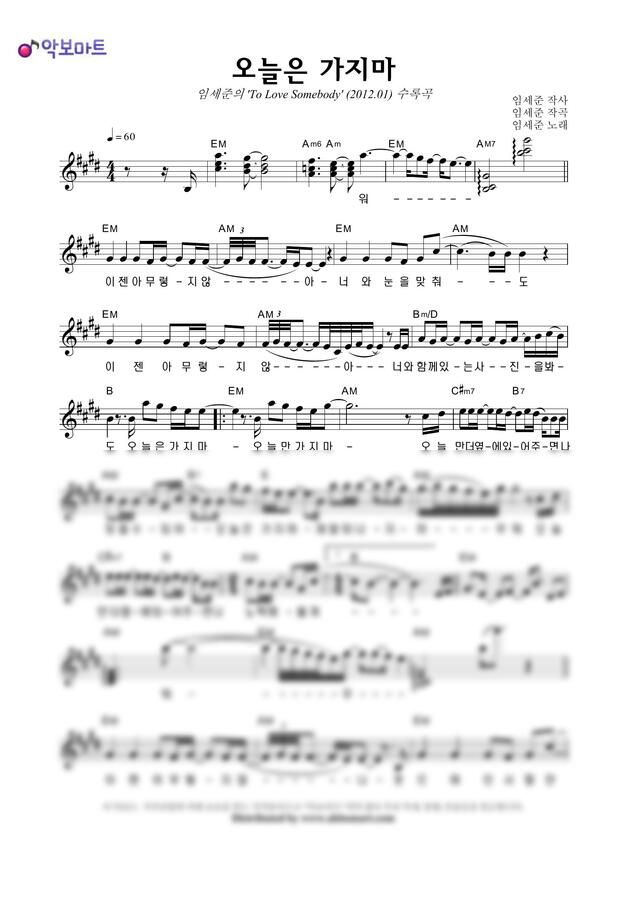 임세준 - 오늘은 가지마 by 악보마트