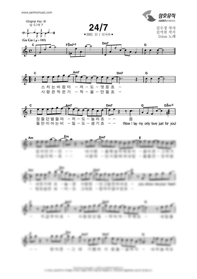 데이식스 - 한 페이지가 될 수 있게(연주,반주악보)