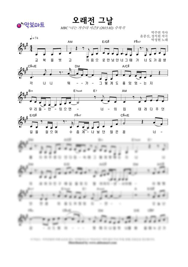 박정현 - 오래전 그날 by 악보마트