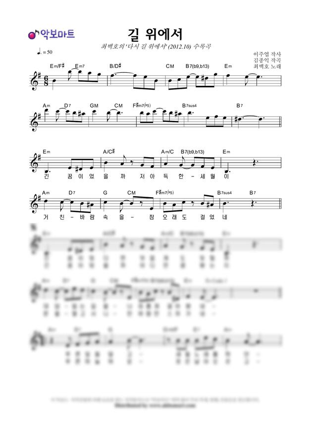 최백호 - 길 위에서 by 악보마트0