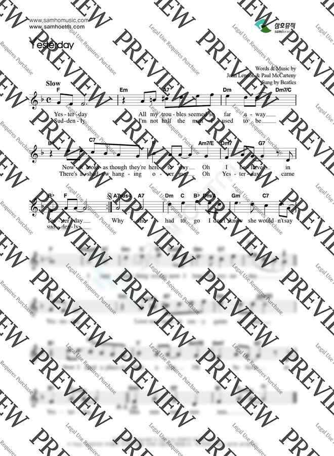 The Beatles - Yesterday by 악보마트