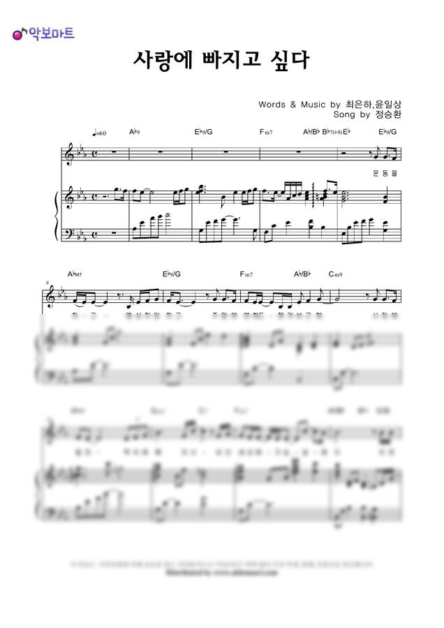 정승환 - 사랑에 빠지고 싶다 by 악보마트