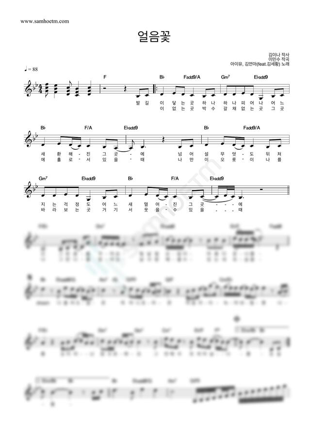 아이유, 김연아 - 얼음꽃(Feat. 김세황) by 악보마트