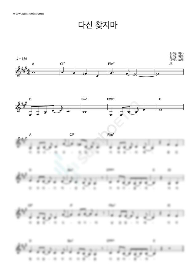 다비치 - 다신 찾지마 by 악보마트