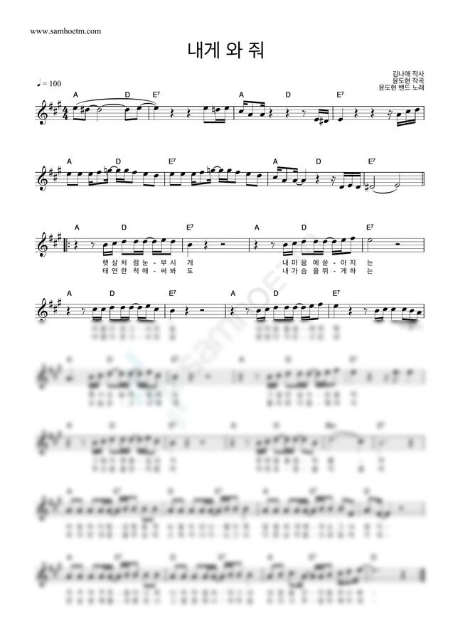 윤도현밴드 - 내게 와 줘 by 악보마트