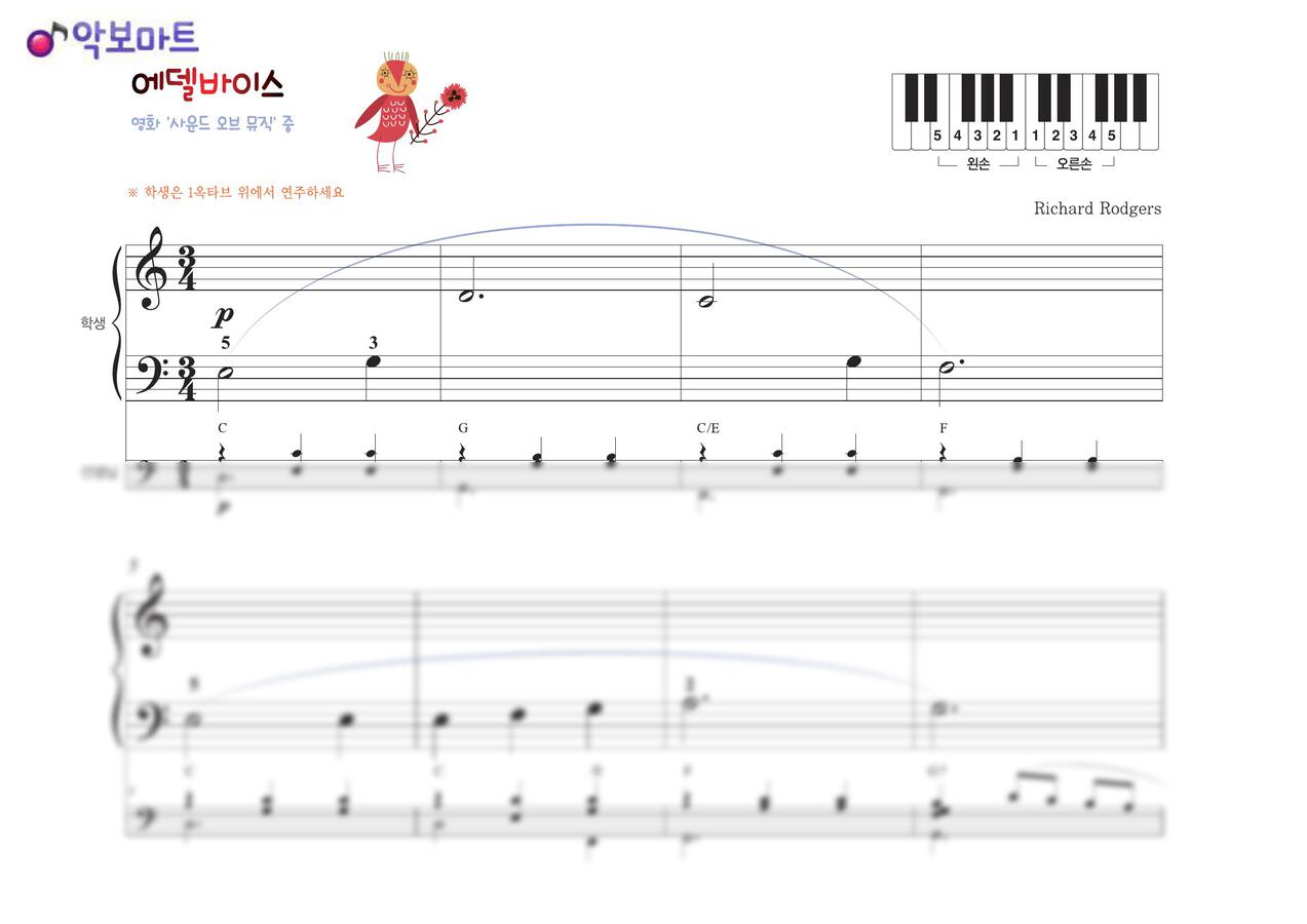 사운드 오브 뮤직 OST - Edelweiss (에델바이스) (매우 쉬운 악보, 학생 + 선생님) by 악보마트