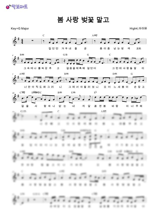 HIGH4 (하이포), 아이유 - 봄 사랑 벚꽃 말고 by 악보마트