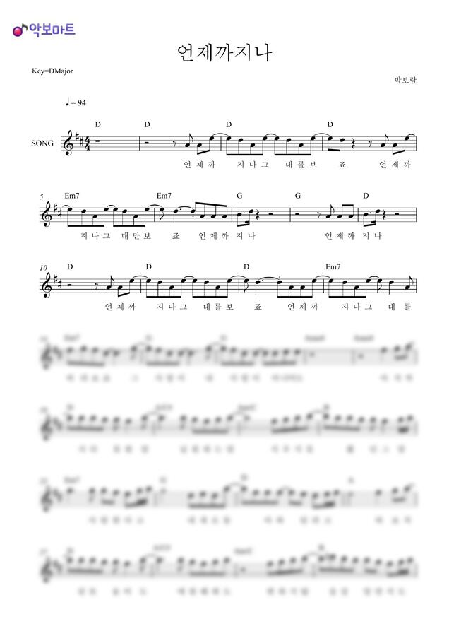 박보람 - 언제까지나 by 악보마트