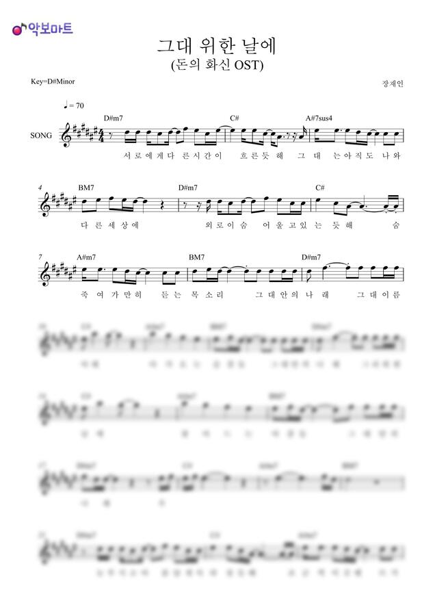 장재인 - 그대 위한 날에 (돈의 화신 OST) by 악보마트