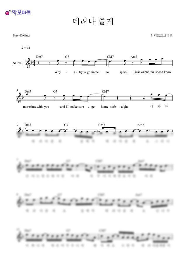 일렉트로보이즈 - 데려다 줄게 by 악보마트