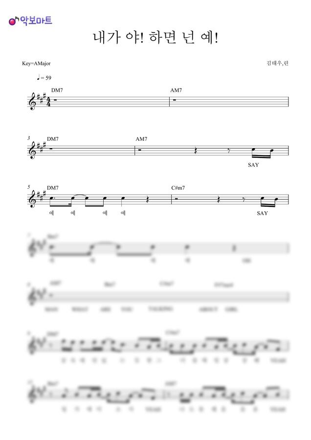 김태우, 린 - 내가 야! 하면 넌 예! by 악보마트