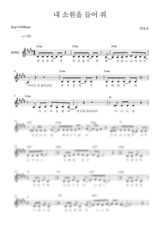 TULA - 내 소원을 들어줘 by 악보마트