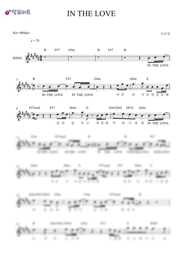 이승철 - IN THE LOVE by 악보마트