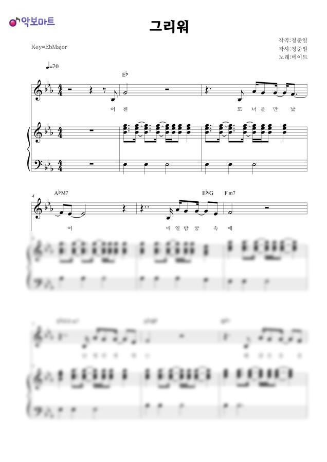 메이트(Mate) - 그리워 by 악보마트