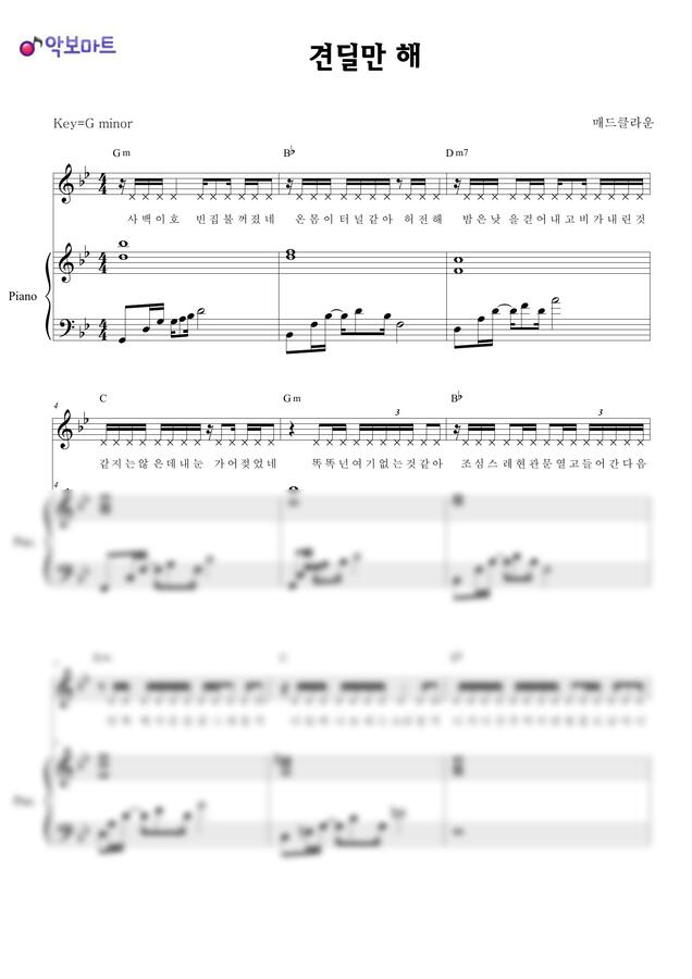 매드클라운 - 견딜만해 (Feat. 효린 Of 씨스타) by 악보마트