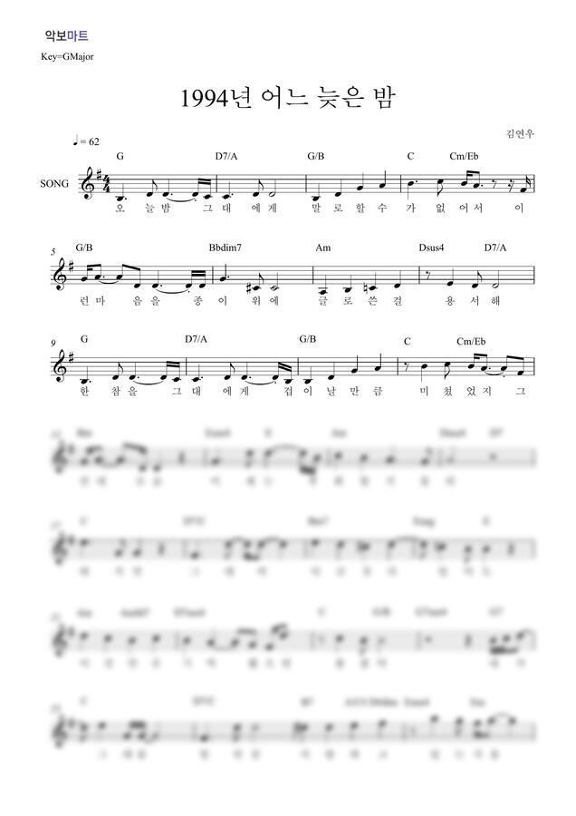 김연우 - 1994년 어느 늦은 밤 by 악보마트