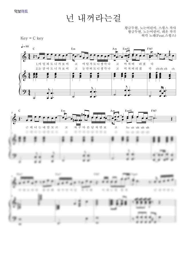허각 - 넌 내꺼라는 걸 by 악보마트