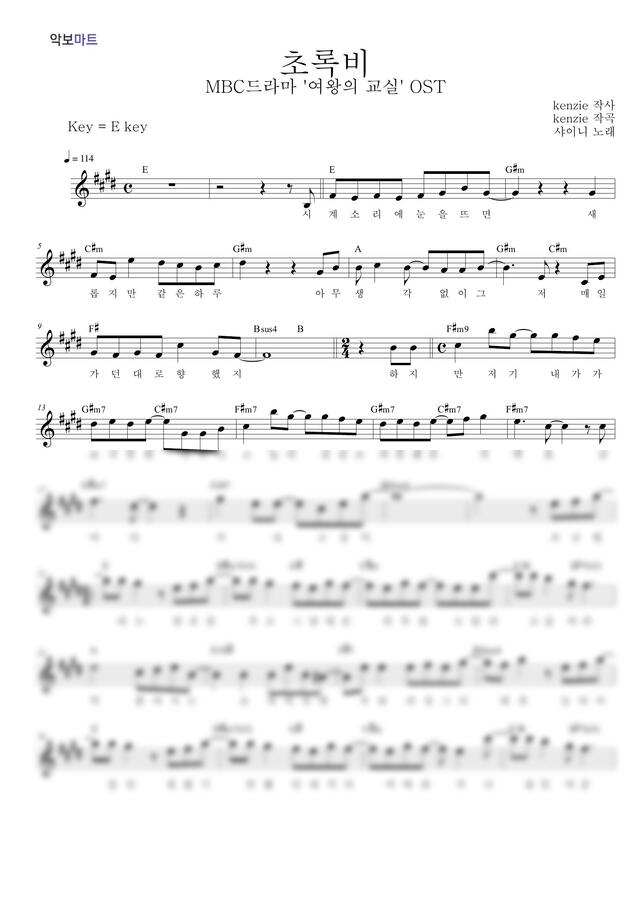 샤이니 - 초록비 by 악보마트
