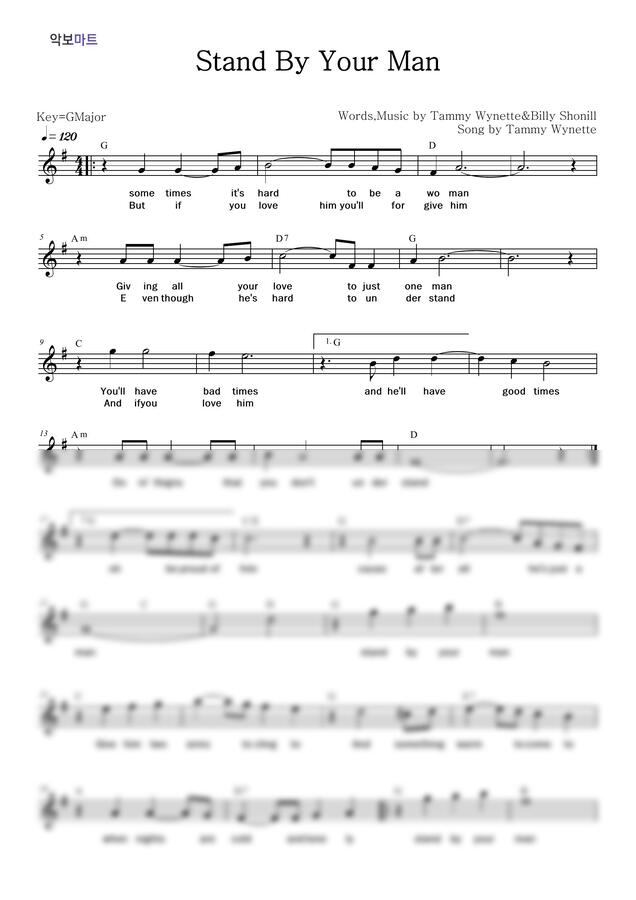 Tammy Wynette - Stand By Your Man by 악보마트