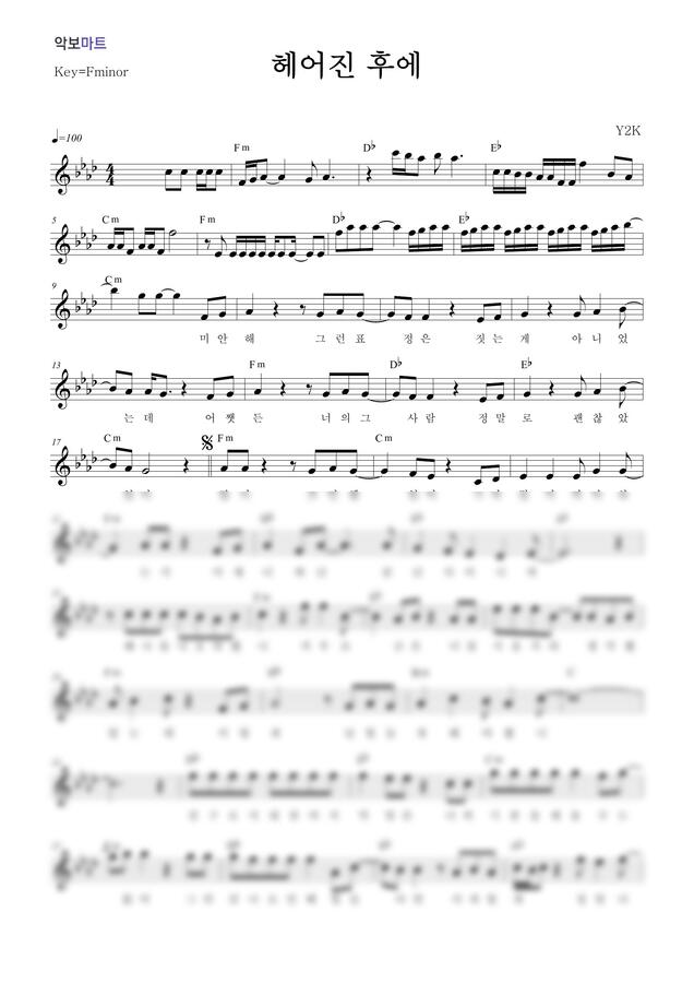 Y2K - 헤어진 후에 by 악보마트