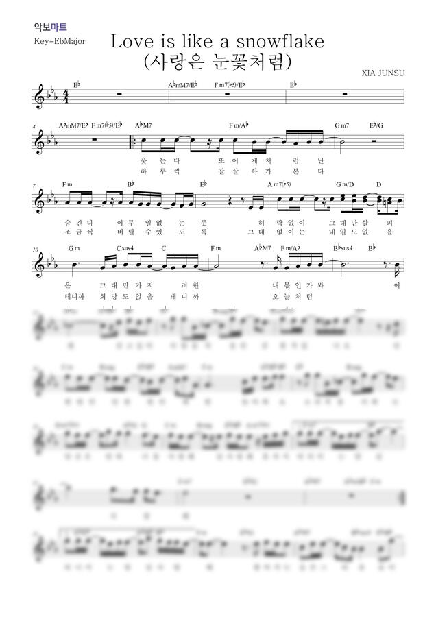 시아준수 - 사랑은 눈꽃처럼 by 악보마트
