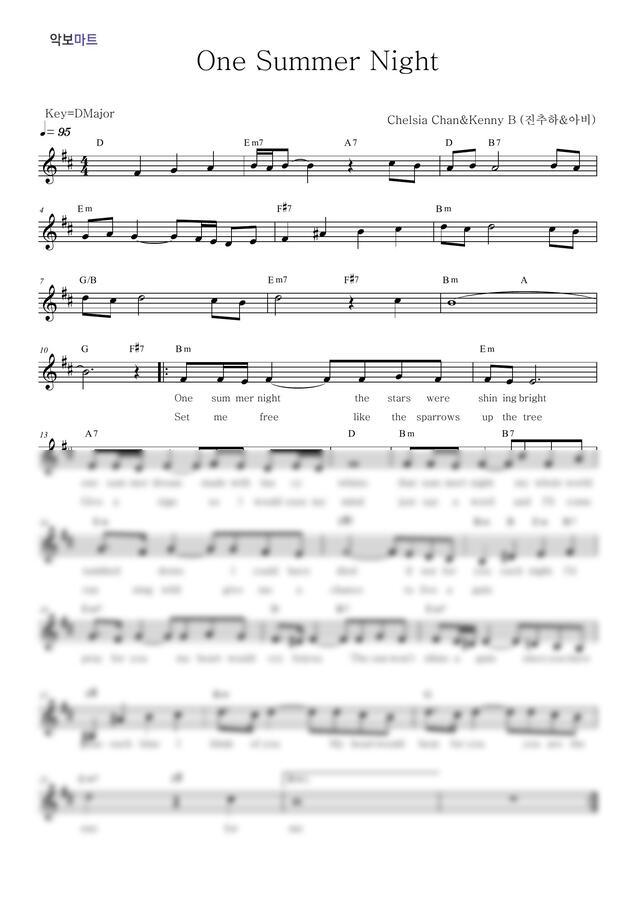 진추하, 아비 - One Summer Night by 악보마트