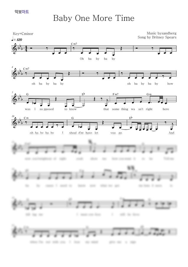 Britney Spears - Baby One More Time by 악보마트