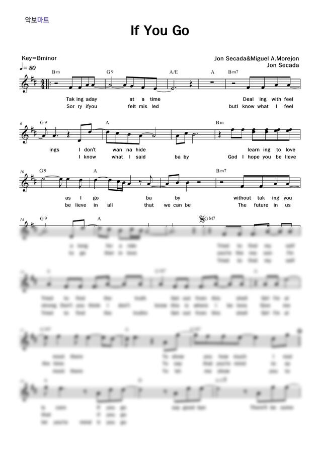 Jon Secada - If you go by 악보마트1
