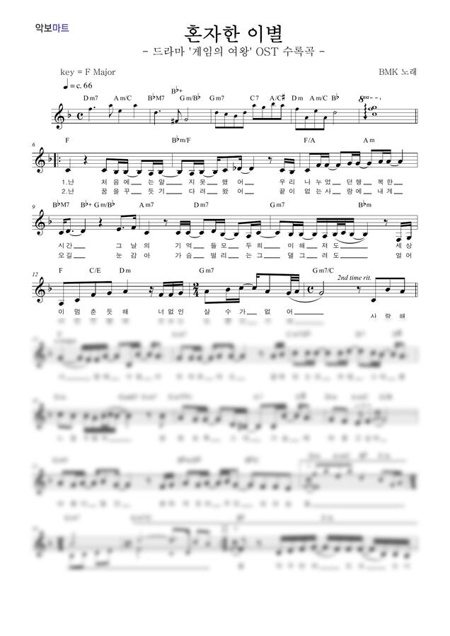 BMK - 혼자한 이별 by 악보마트
