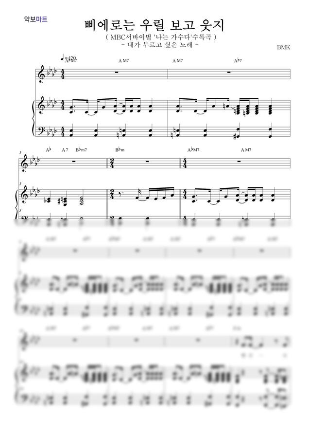 BMK - 삐에로는 우릴 보고 웃지 by 악보마트