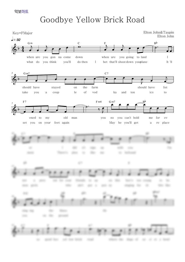Elton John - Goodbye Yellow Brick Road by 악보마트