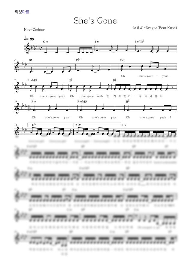G-Dragon - She's gone by 악보마트1