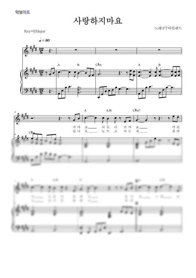 FT아일랜드 - 사랑하지마요 by 악보마트