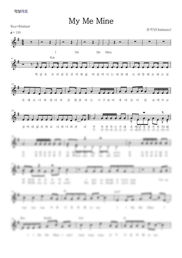 포미닛 - My Me Mine by 악보마트 1p 미리보기