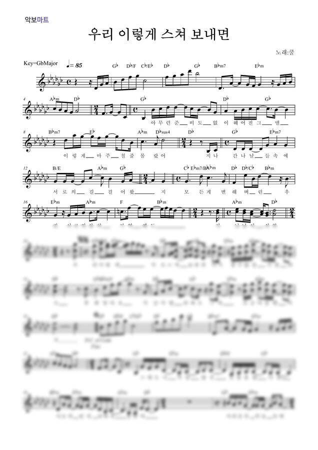 쿨 - 우리 이렇게 스쳐 보내면 by 악보마트