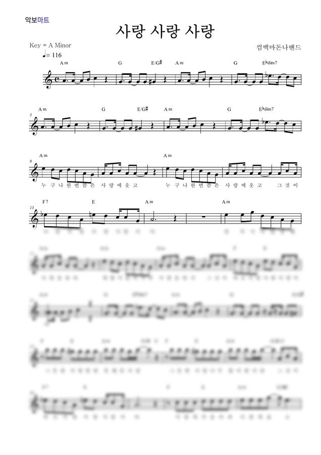 컴백마돈나밴드 - 사랑사랑사랑 by 악보마트