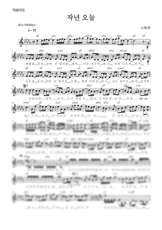 쿨 - 작년 오늘 by 악보마트
