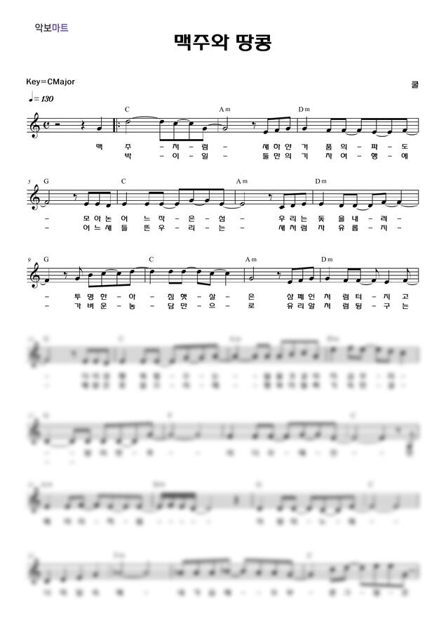 쿨 - 맥주와 땅콩 by 악보마트