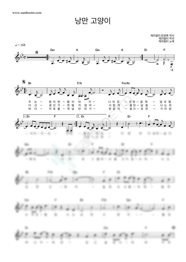 체리필터 - 낭만 고양이 by 악보마트