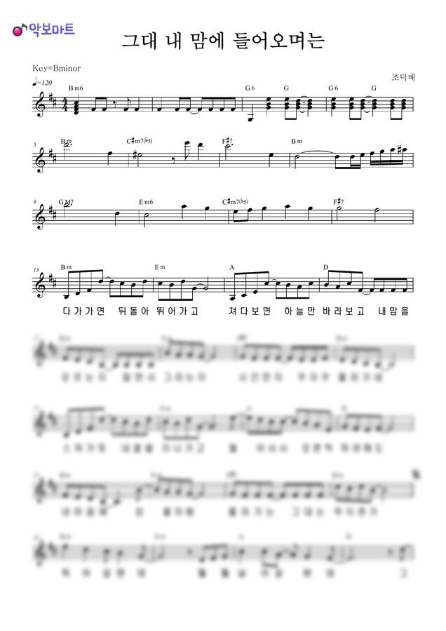 조덕배 - 그대 내맘에 들어오면은 by 악보마트0