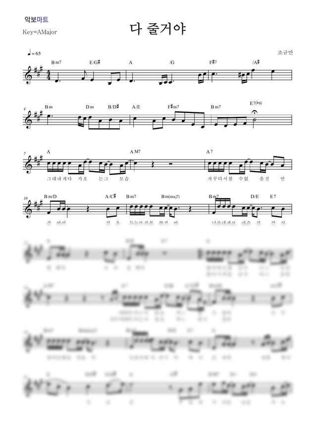 조규만 - 다 줄꺼야 by 악보마트