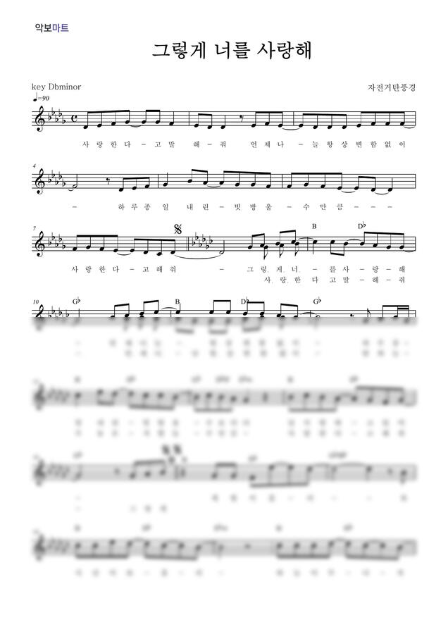 자전거 탄 풍경 - 그렇게 너를 사랑해 by 악보마트