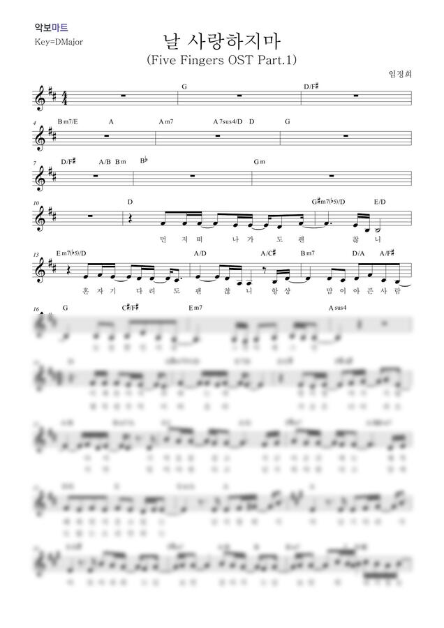 임정희 - 날 사랑하지마 (Five Fingers OST Part.1) by 악보마트