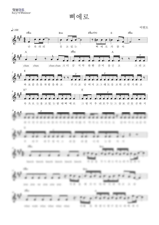 이현도 - 삐에로 by 악보마트