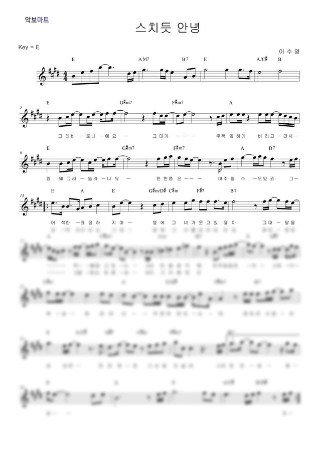 이수영 - 스치듯 안녕 by 악보마트