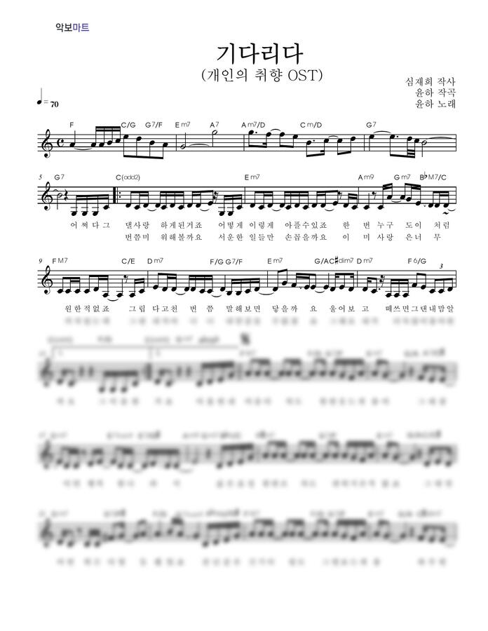 윤하 (YOUNHA) - 기다리다 by 악보마트