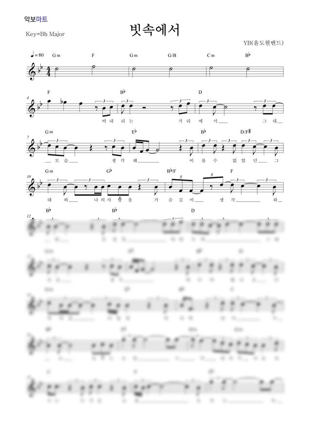 데이식스 - 한 페이지가 될 수 있게(연주,반주악보)