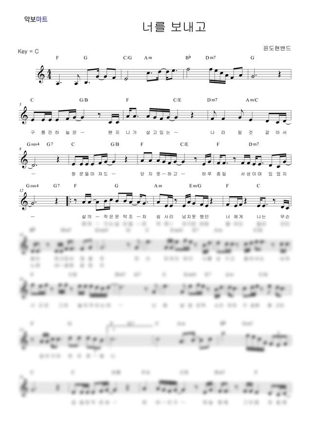 윤도현 - 너를 보내고 by 악보마트