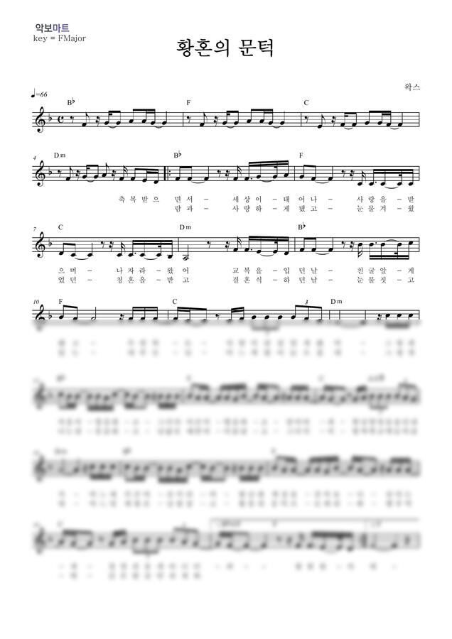 왁스 - 황혼의 문턱 by 악보마트